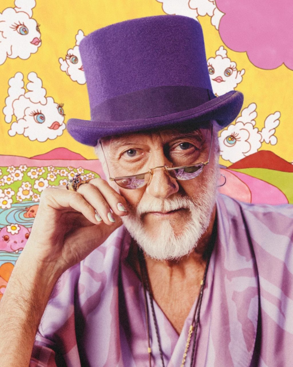 Así es como Mick Fleetwood será el rostro en productos para la cara, las uñas, sueros faciales, bálsamo, labiales y hasta ropa psicodélica de edición limitada en Pleasing.