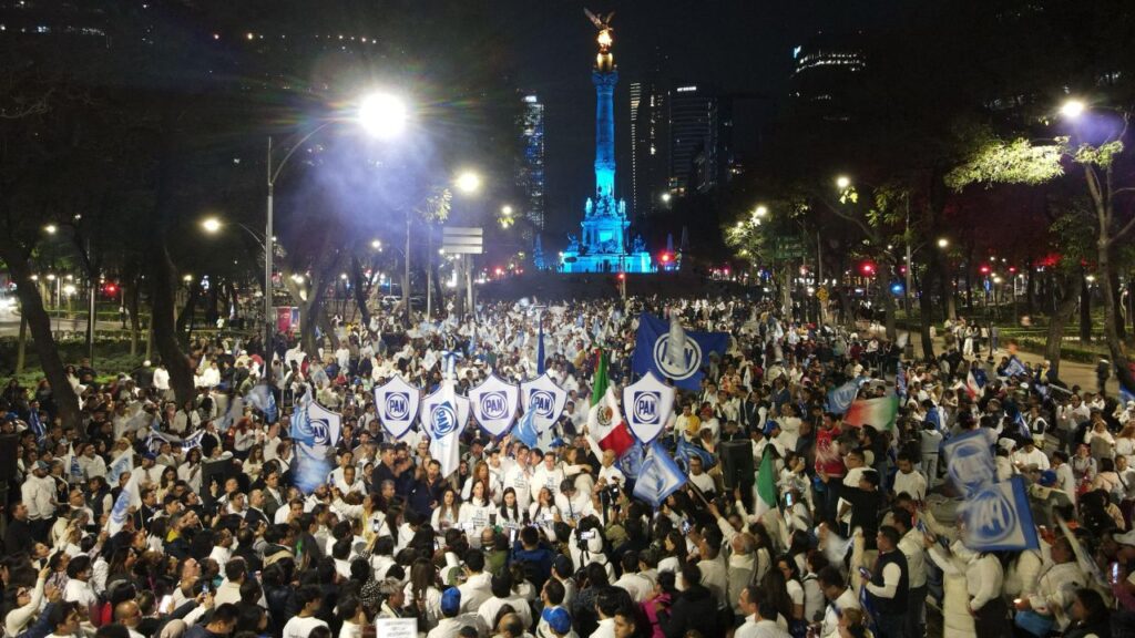 El PAN se manifestó en Paseo de la Reforma para protestar en contra de la elección de jueces, ministros y magistrados del próximo 1 de junio, tras la reforma al Poder Judicial.