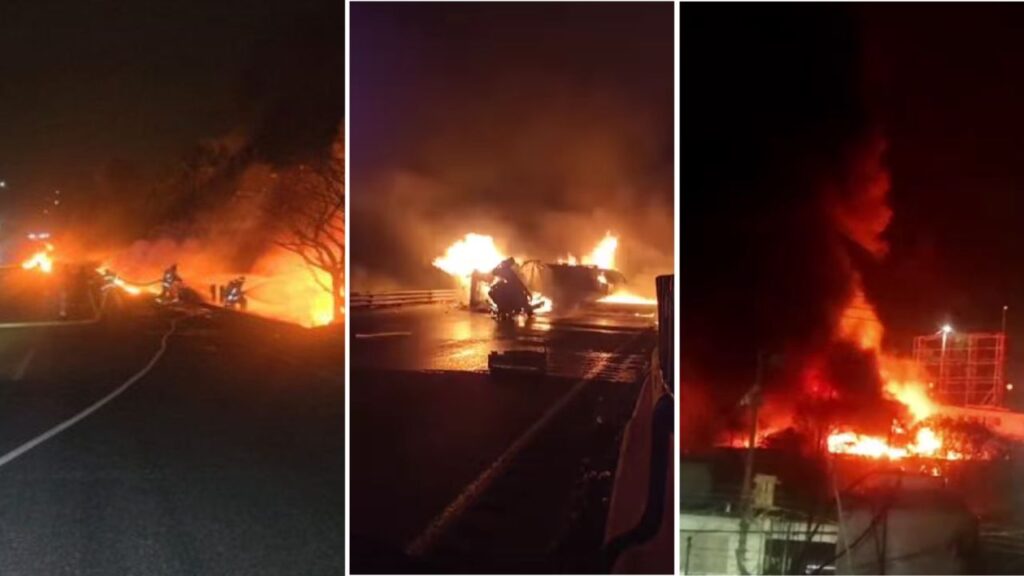 A través de las redes sociales reportaron que una pipa de combustible explotó y desencadenó un incendio sobre dicha autopista dejando afectaciones en algunas casas aledañas al lugar.