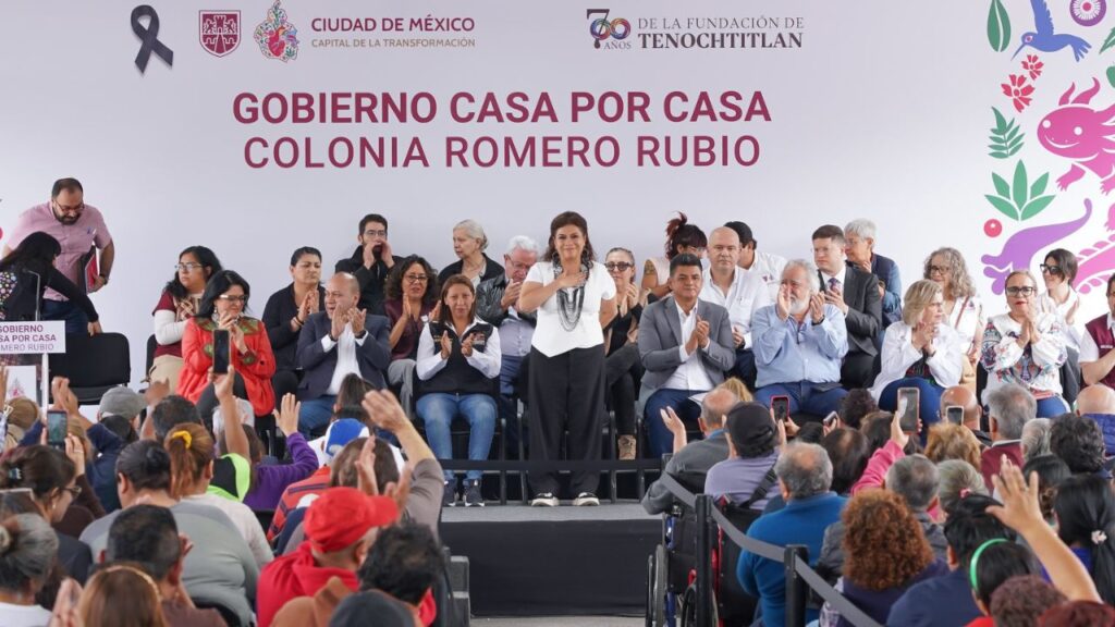 La jefa de Gobierno, Clara Brugada, reinició el programa “Casa por Casa” en la colonia Romero Rubio, donde las y los funcionarios de su Gabinete la arroparon; éste es el primer recorrido tras el ataque armado en que dos de sus colaboradores más cercanos perdieron la vida.