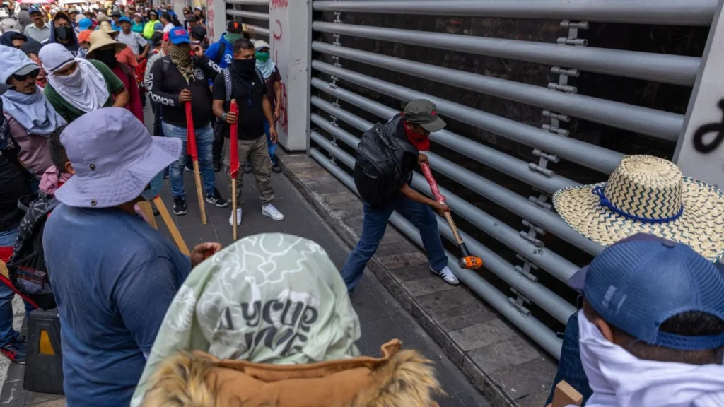 De acuerdo con la información, con varias herramientas, los presuntos miembros de la CETEG destruyeron las puertas de este edificio de la SNTE para acceder a él. Durante los hechos, algunos encapuchados hostigaron a los medios de comunicación presentes para no captar los hechos.