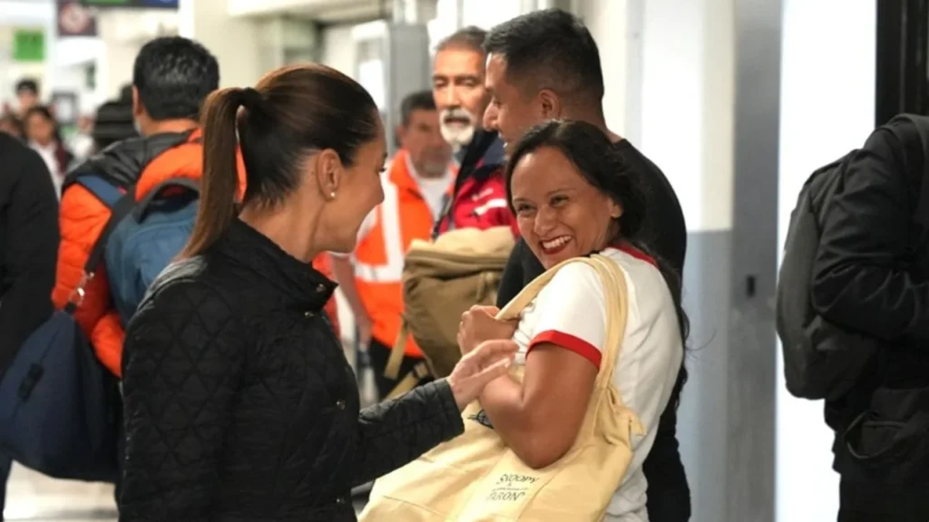 A su llegada la titular del Ejecutivo fue recibida por migrantes mexicanos quienes agradecieron su apoyo y pidieron no olvidar a sus estados.