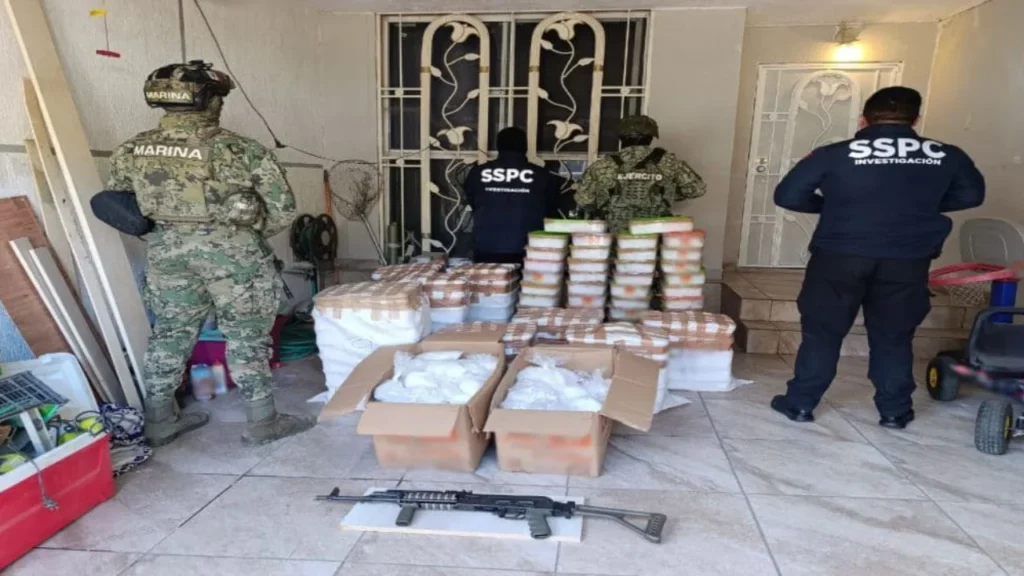Mientras que, el segundo aseguramiento fue en Baja California, en cuya capital, “Tijuana, se aseguraron 420 kilos de metanfetamina, un arma larga y un inmueble”.