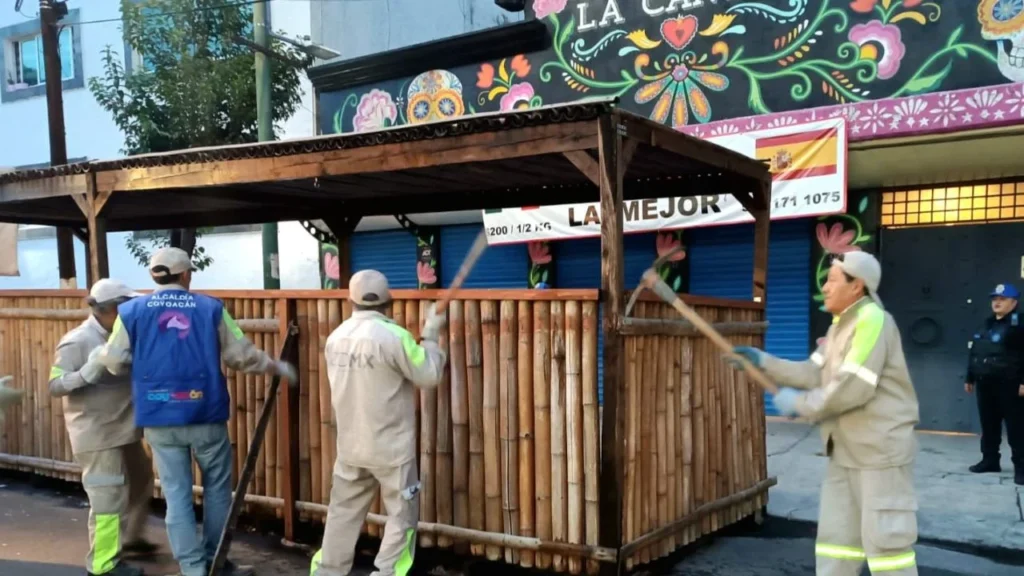 Retiran pérgolas en comercios de Coyoacán