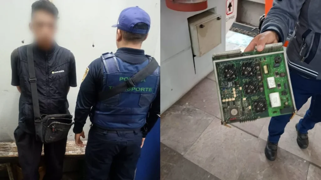 Autoridades de la Ciudad de México y del Estado de México detuvieron a un individuo que presuntamente robó el panel de tarjetas electrónicas de un tren del Metro en la Línea B; el sujeto terminó a disposición del Ministerio Público.
