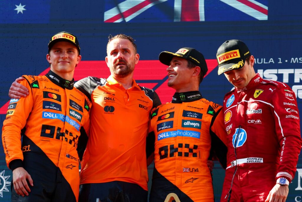 Su compañero de equipo, Oscar Piastri, ha cruzado la línea de meta pegado al británico y ha cerrado el podio Charles Leclerc con Ferrari.
