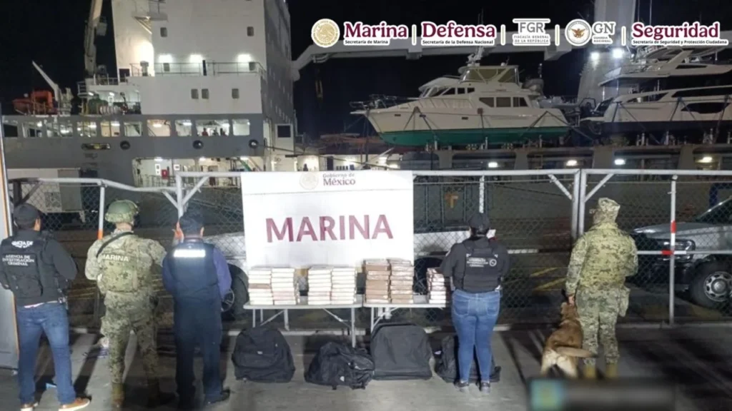 En Ensenada, Baja California, la Secretaría de Marina encontró y aseguró cerca de 200 kilos de cocaína ocultos en maletas; el valor de mercado de la droga asciende a los 48 millones de pesos (mdp).