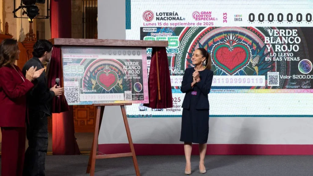 La presidenta Claudia Sheinbaum anunció que el Gran Sorteo Especial para el 15 de septiembre, se dedicará a los migrantes y tendrá un premio mayor de 255 millones de pesos.