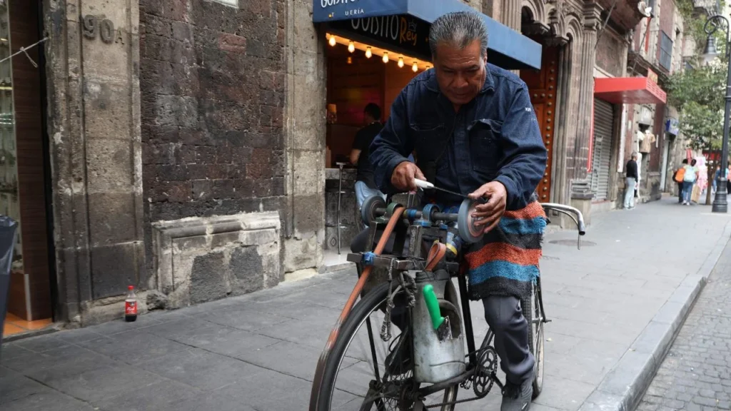 A bordo de su bicicleta, el señor Pedro Pichardo ha recorrido las calles del Centro Histórico por cuatro décadas para mantener vivo un oficio que se creía extinto: afilar cuchillos; compartió que su trabajo es tan significativo, que participó en una escena de la película Roma, de Alfonso Cuarón.