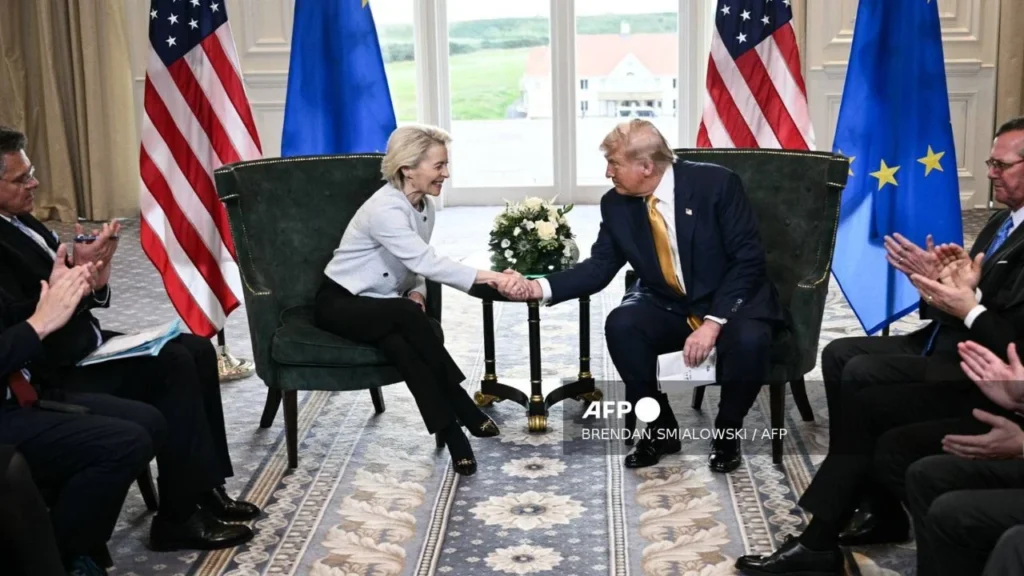 La relación comercial entre Estados Unidos y la Unión Europea representa un 30% de los intercambios globales, con un monto de unos 2 billones de dólares en bienes y servicios en 2024, según el Consejo Europeo.