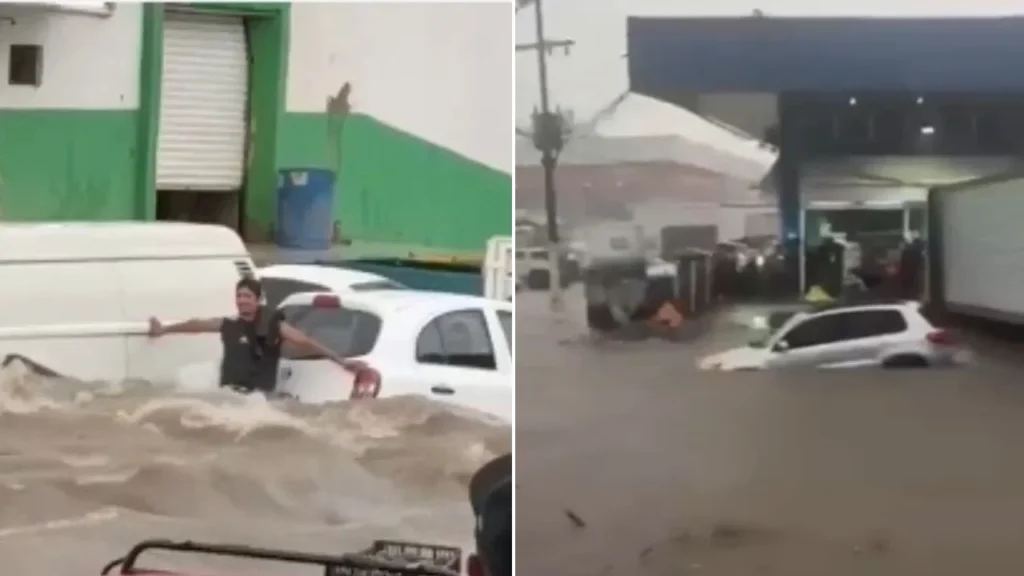 De acuerdo con los reportes de medios locales, el nivel del agua superó en algunas zonas el metro de altura provocando que varios vehículos quedaran varados e incluso arrastrados por las corrientes de agua.