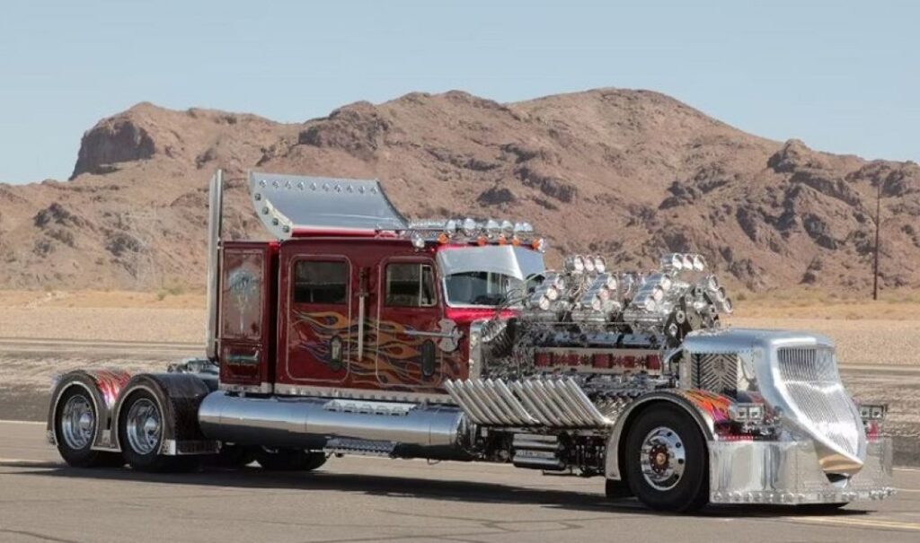 El Thor 24, un big rig personalizado con un precio de $13.2 millones (vendido en subasta en 2019), es el camión más potente jamás construido. Equipado con dos motores V12 Detroit Diesel y 12 supercargadores, genera 3,974 caballos de fuerza y un torque estimado de 3,000 libras pie de torque.