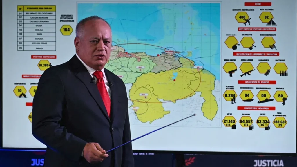 Caracas reaccionó acusando a Estados Unidos de cometer ejecuciones extrajudiciales en el mar. El ministro del Interior, Diosdado Cabello, afirmó que “asesinaron a 11 personas sin fórmula de juicio” y cuestionó la legalidad de la operación: “¿Ninguna sospecha de narcotráfico autoriza ejecuciones en el mar. ¿Y el derecho a la defensa?”, señaló en su programa de televisión.