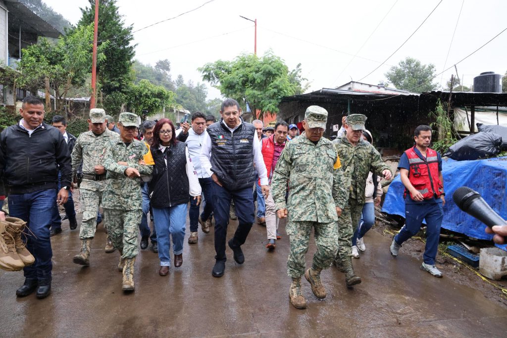 El gobernador de Puebla, Alejandro Armenta Mier recorrió con una comitiva zonas afectadas por las intensas lluvias para supervisar los avances en la limpieza de escombros.