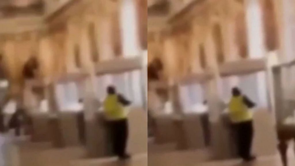 En redes sociales comienza a circular un video de un teléfono de uno de los visitantes que captó el momento justo en el que uno de los ladrones de estas joyas estaba rompiendo una de las vitrinas de la sala Apolo para apoderarse de las joyas.