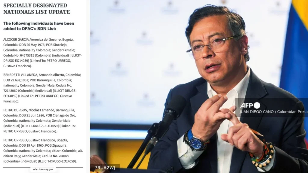 Las, publicadas por la Oficina de Control de Bienes Extranjeros (OFAC por sus siglas en inglés), implican el bloqueo de cualquier propiedad que Petro medidas, así como su esposa y uno de sus hijos, tengan en Estados Unidos, y también les impide realizar transacciones internacionales con medios de pago localizados en Estados Unidos.