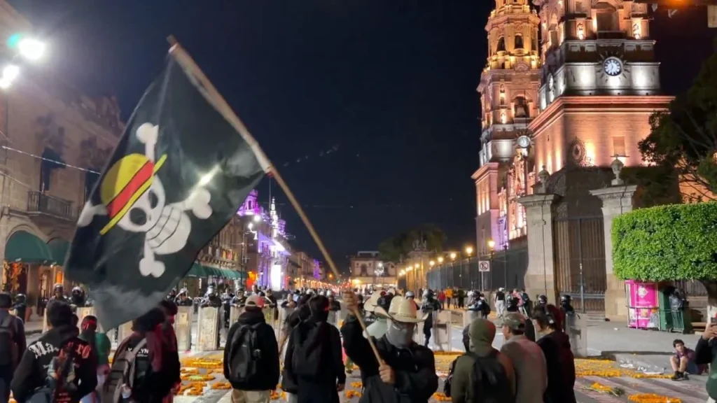 Por su parte, la Fiscalía General de Michoacán (FGE) informó que fueron puestos en libertad siete de los ocho detenidos por las protestas en el centro histórico de la capital del estado y que se ejercerá acción penal contra uno de ellos por el delito de sabotaje y daño en las cosas.