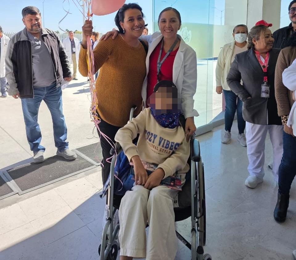 Por su parte, la directora del HRAE de Torreón, Margarita Martínez Moreno, la felicitó por su recuperación y reconoció el trabajo del personal de salud.