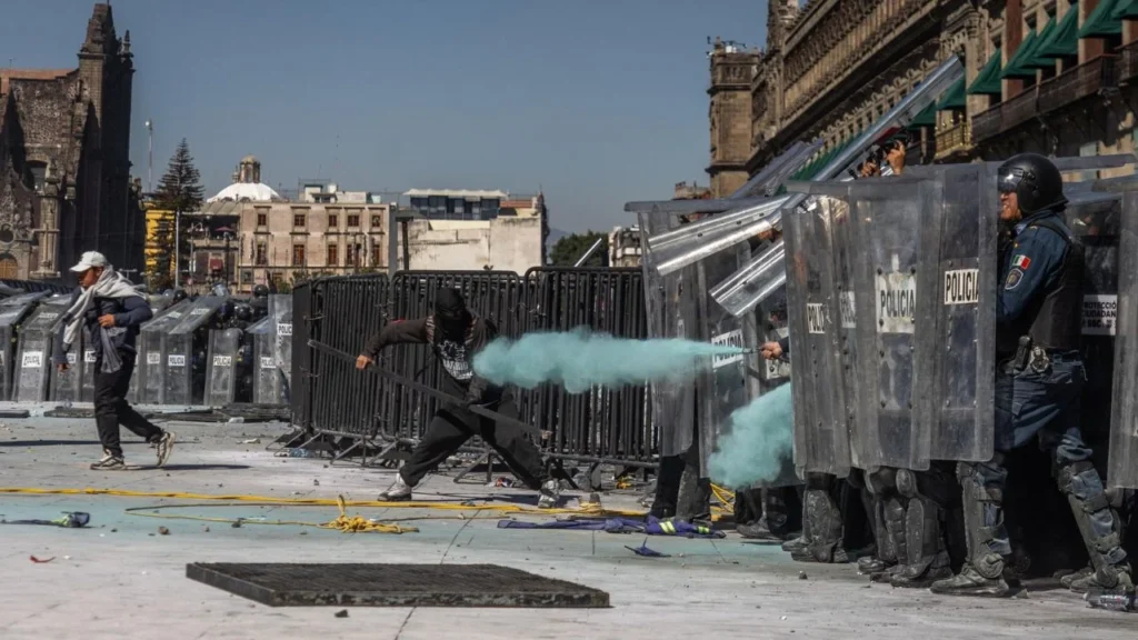“El objetivo, de lo que se ve, no era pasar a Palacio, porque solo se ve a una persona llegar a Palacio Nacional, sino agredir a la policía”, señaló la presidenta, Claudia Sheinbaum, sobre la marcha del sábado de la Generación “Z” en Palacio Nacional.