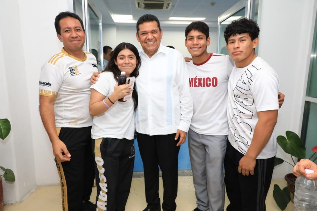 El mandatario adelantó que en las próximas semanas iniciará la rehabilitación integral del Palacio de los Deportes de Villahermosa, actualmente en proceso de licitación. El Gobierno del Estado destinará 58 millones de pesos para esta obra, que se consolidará como un Centro de Alto Rendimiento con albergue para que las y los atletas cuenten con una estancia digna y segura.