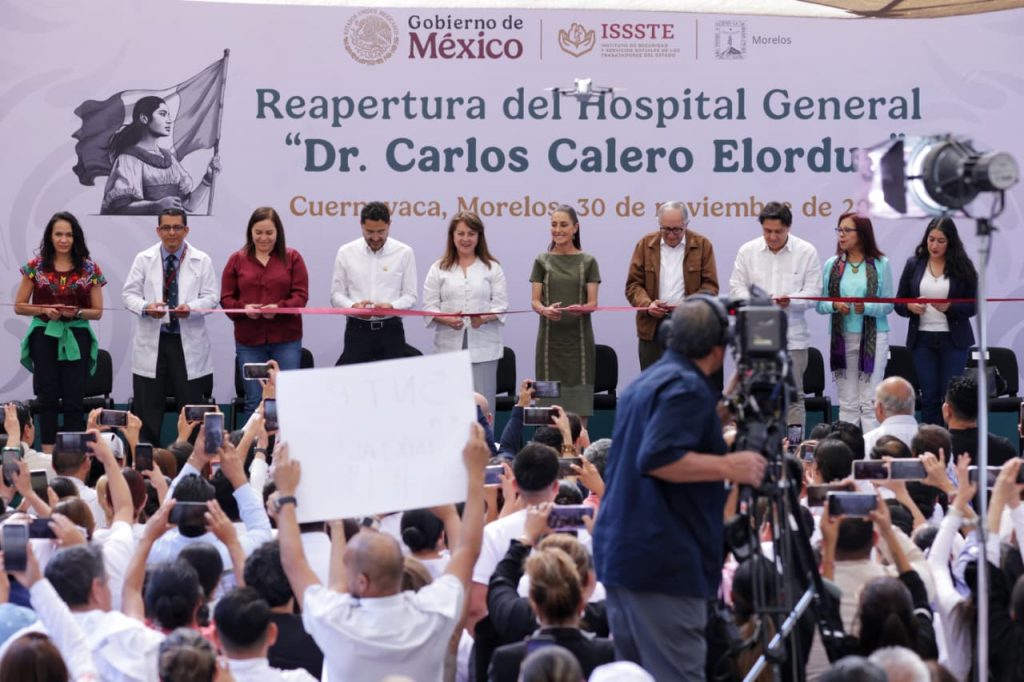 La Presidenta de México, Claudia Sheinbaum Pardo, y el director general del ISSSTE, Martí Batres Guadarrama, encabezaron la reapertura del Hospital General “Dr. Carlos Calero Elorduy”, ubicado en Cuernavaca, Morelos. La unidad, rehabilitada a petición de la comunidad, beneficiará a 157 mil 752 derechohabientes.