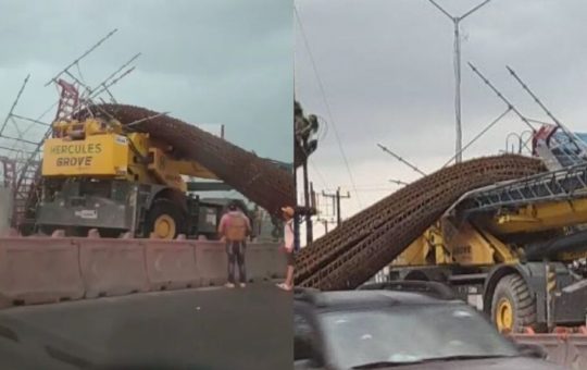 En las obras de construcción de la Línea 6 del Metrorrey colapsó una columna de varillas y cayó sobre una...