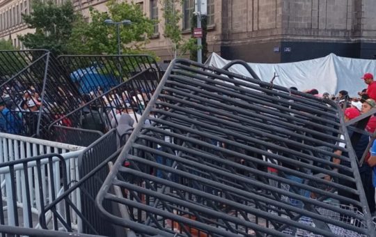 Integrantes de la Coordinadora Nacional de Trabajadores de la Educación (CNTE) quitaron las vallas que rodeaban Palacio Nacional y bloquean...
