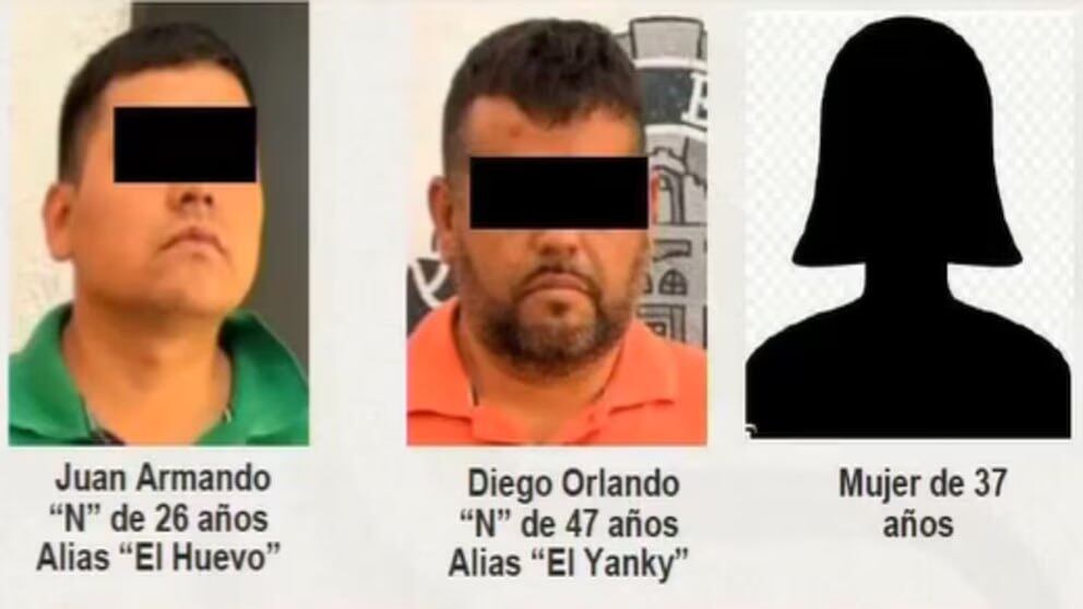 Juan Armando N, de 26 años, apodado “El Huevo”Diego Orlando N, de 39 años, alias “El Yanky”Una mujer de 37 años