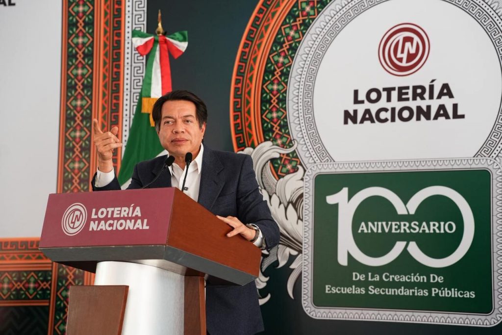 El secretario de Educación Pública, Mario Delgado Carrillo, y la directora general de la Lotería Nacional, Olivia Salomón, encabezaron la develación del billete del Sorteo Superior No. 2875, conmemorativo del “Centenario de la creación de las Escuelas Secundarias Públicas” en México.