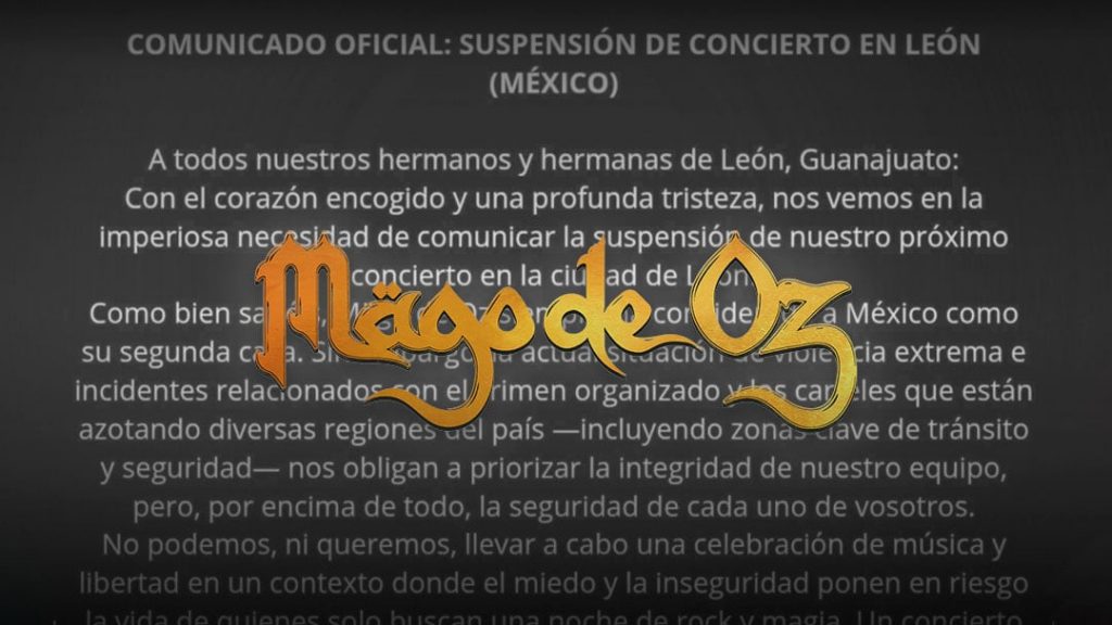 Mägo de Oz expresó que perciben a México como “su segunda casa”, pero sabían que el país vivía una jornada de “violencia extrema” y de incidentes relacionados con el crimen organizado.