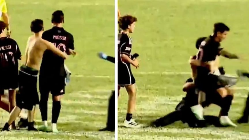 Messi es derribado por seguridad durante invasión de cancha