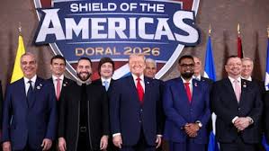 Se gira hacia el resto del grupo: Kamla Persad-Bissessar, Nasry Asfura, Rodrigo Paz, Rodrigo Chaves, Luis Abinader, Irfaan Ali, Santiago Peña y José Antonio Kast. —De ustedes mejor ni me ocupo; son tan turulatos en el desempeño del trabajo asignado que me deprimen.