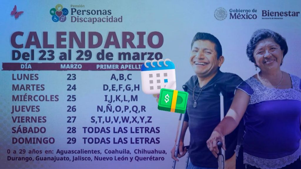 Pensión Bienestar para Personas con Discapacidad: calendario de pagos de marzo 2026 por letra