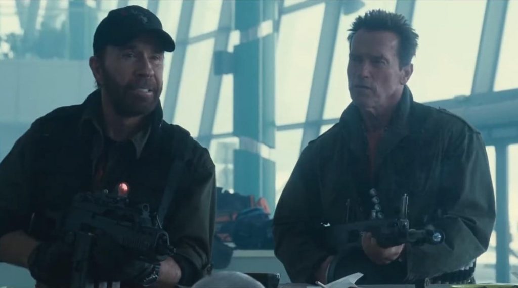 En la pantalla grande, tanto Arnold Schwarzenegger como Chuck Norris estuvieron en la película Los Indestructibles 2.