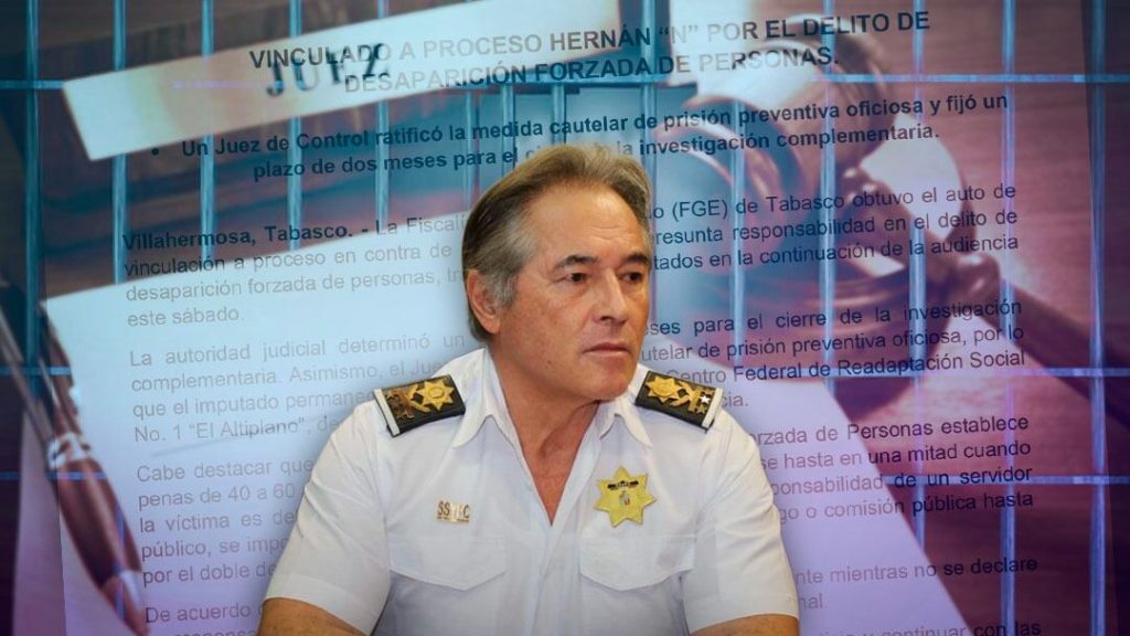 “La Fiscalía General del Estado de Tabasco obtuvo el auto de vinculación a proceso en contra de Hernán “N” por su presunta responsabilidad en el delito de desaparición forzada de personas… (la ley) establece penas de 40 a 60 años de prisión”