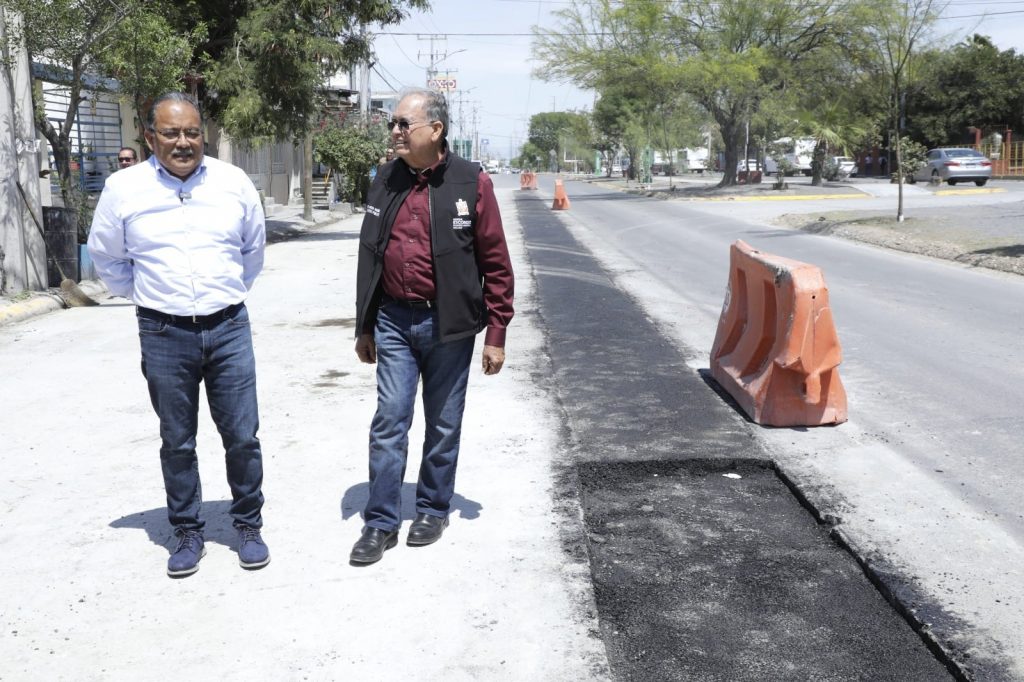 Andrés Mijes supervisa recarpeteo en avenida Agualeguas tras fuga en drenaje
