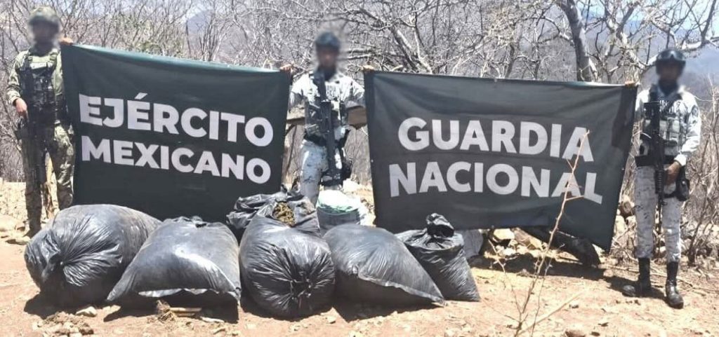 En un comunicado, las autoridades informaron que la droga fue localizada en una zona de difícil acceso de Olinalá, donde presuntamente era resguardada para su distribución.