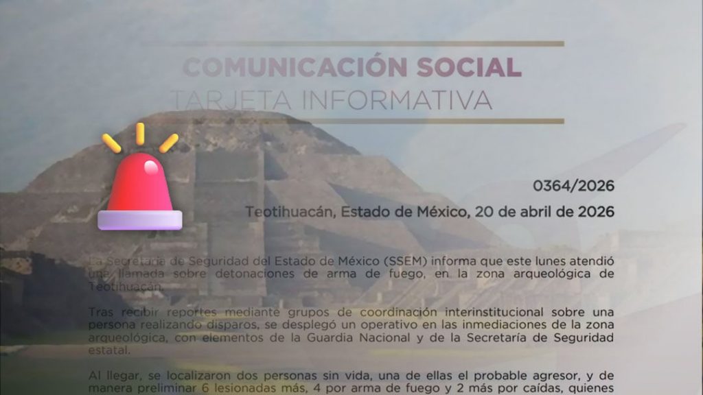 La Secretaría de Seguridad del Estado de México (Edomex) confirmó que la balacera registrada hoy lunes 20 de abril en Teotihuacán dejó seis personas heridas, además de dos muertos.