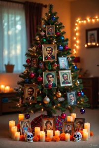 Familias aprovechan puente para poner el arbolito junto a un retrato de Madero