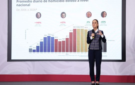 Claudia Sheinbaum, presidenta de México, reportó una caída en homicidios dolosos del 45% desde el fin del sexenio anterior. Desde...