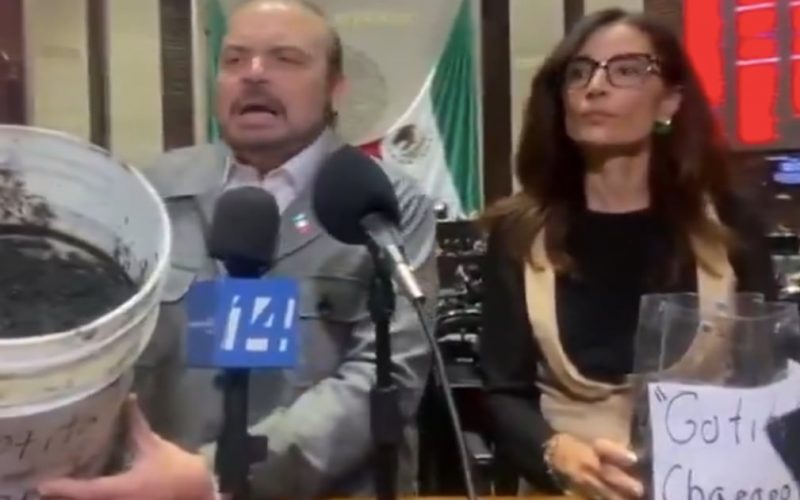 MC lleva chapopote a San Lázaro en protesta por derrame en el Golfo de México