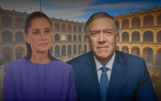 La presidenta Claudia Sheinbaum recibió en Palacio Nacional al ex secretario de Estado de los Estados Unidos, Mike Pompeo, con...